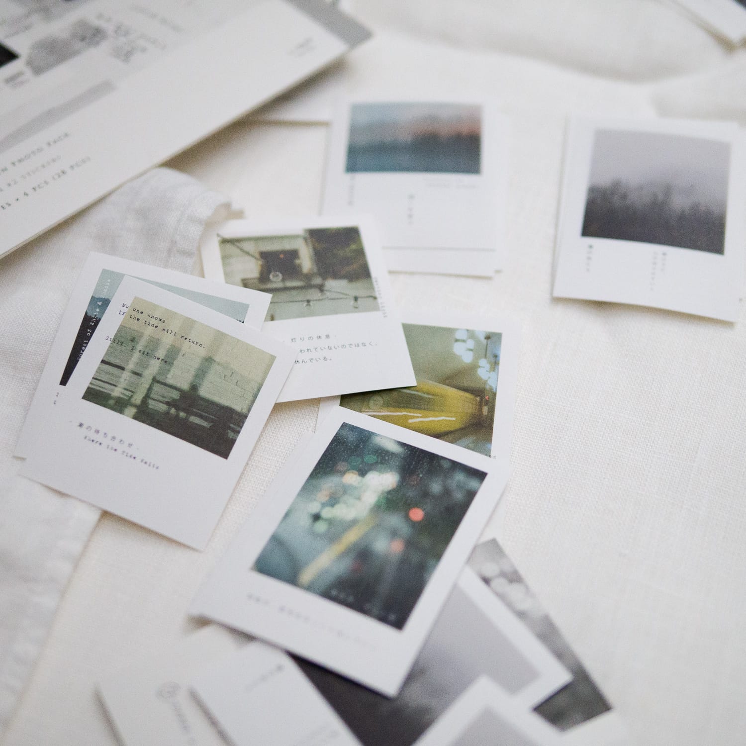 チェキ風に切り取った自然や日常の一瞬に、やさしいメッセージを重ねたフォトデザイン。