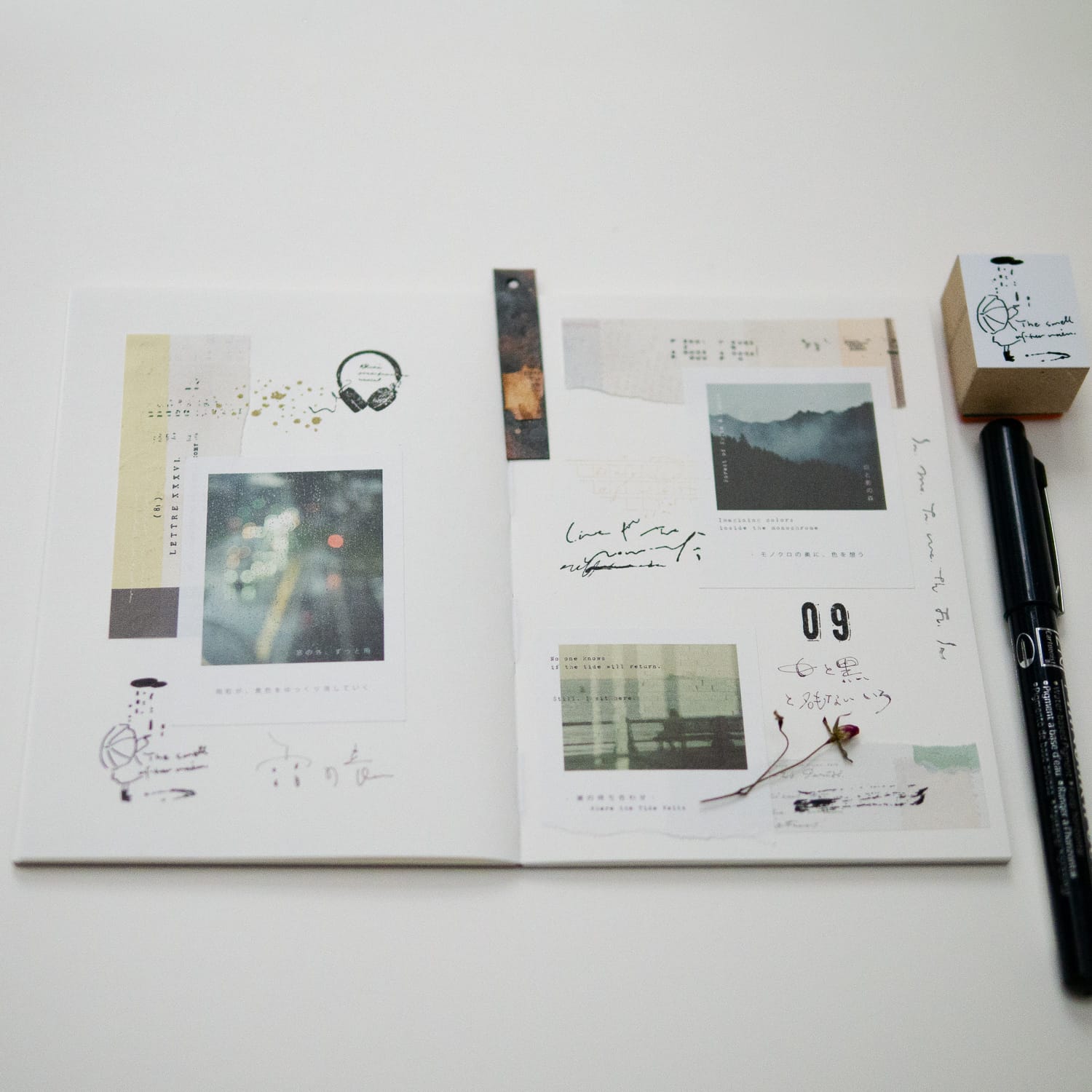 スタンプや紙モノとの組み合わせで、コラージュやジャーナル、手帳のページに貼って楽しめます。
