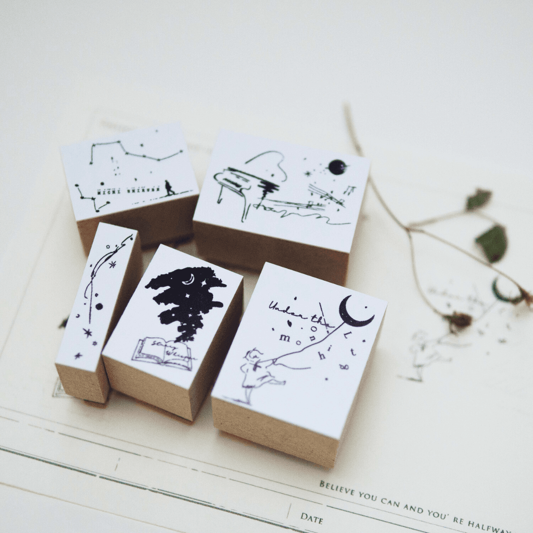 3.月明かりの下で:月を優しく揺らす、夢のあるスタンプ(W24mm × H31mm)