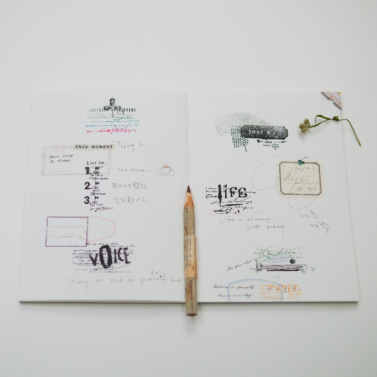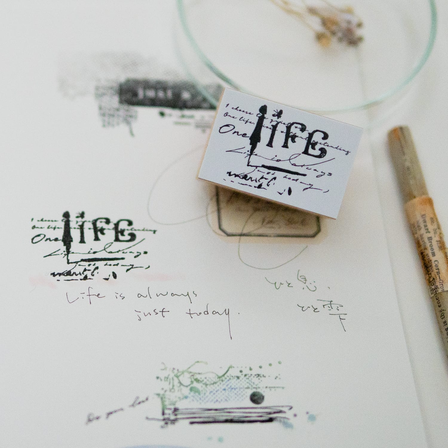 -「one Life」 線と文字のコラージュスタンプ –