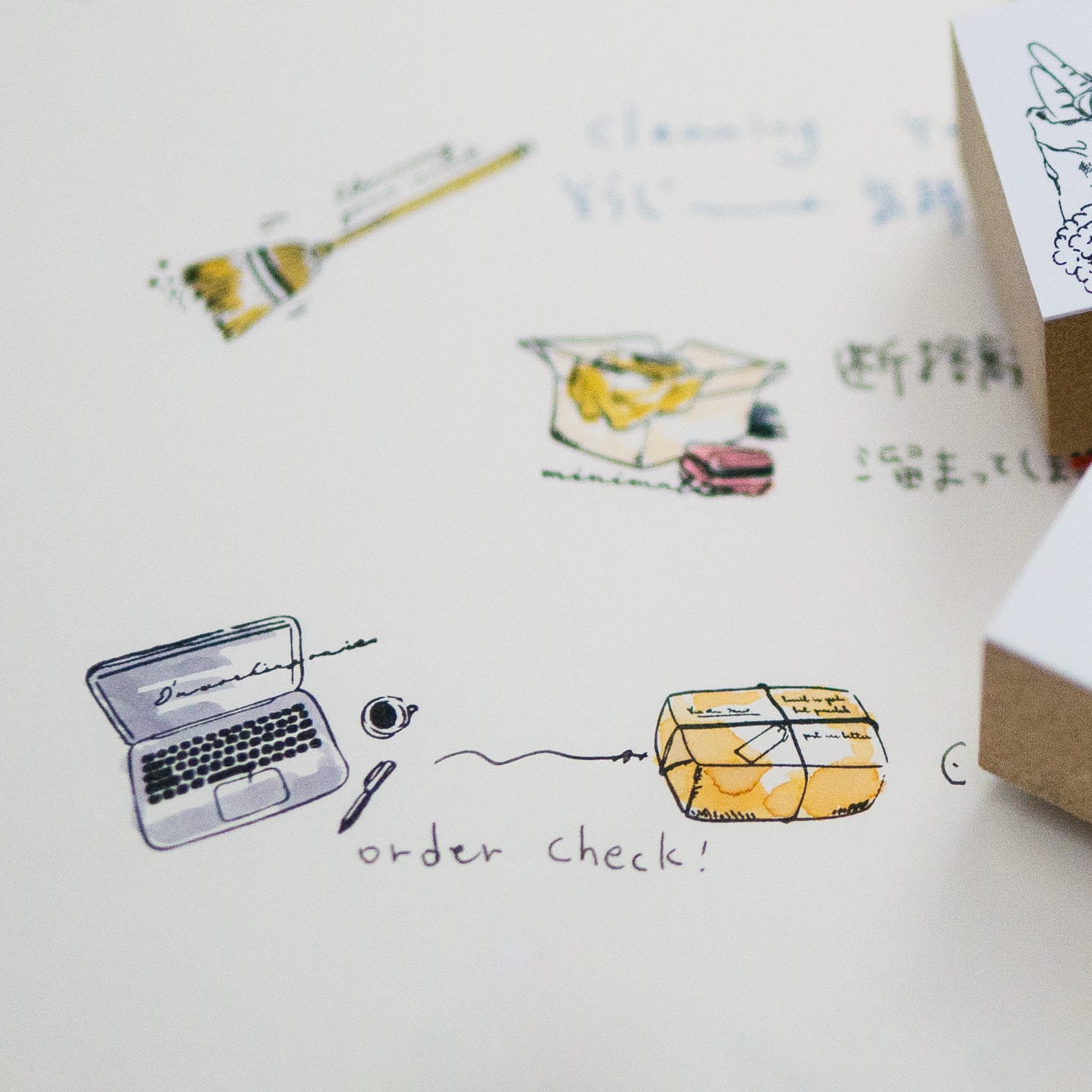 ノートにスタンプをポンと捺して「今日も気持ちよく過ごそう!」と一日を始めることで、