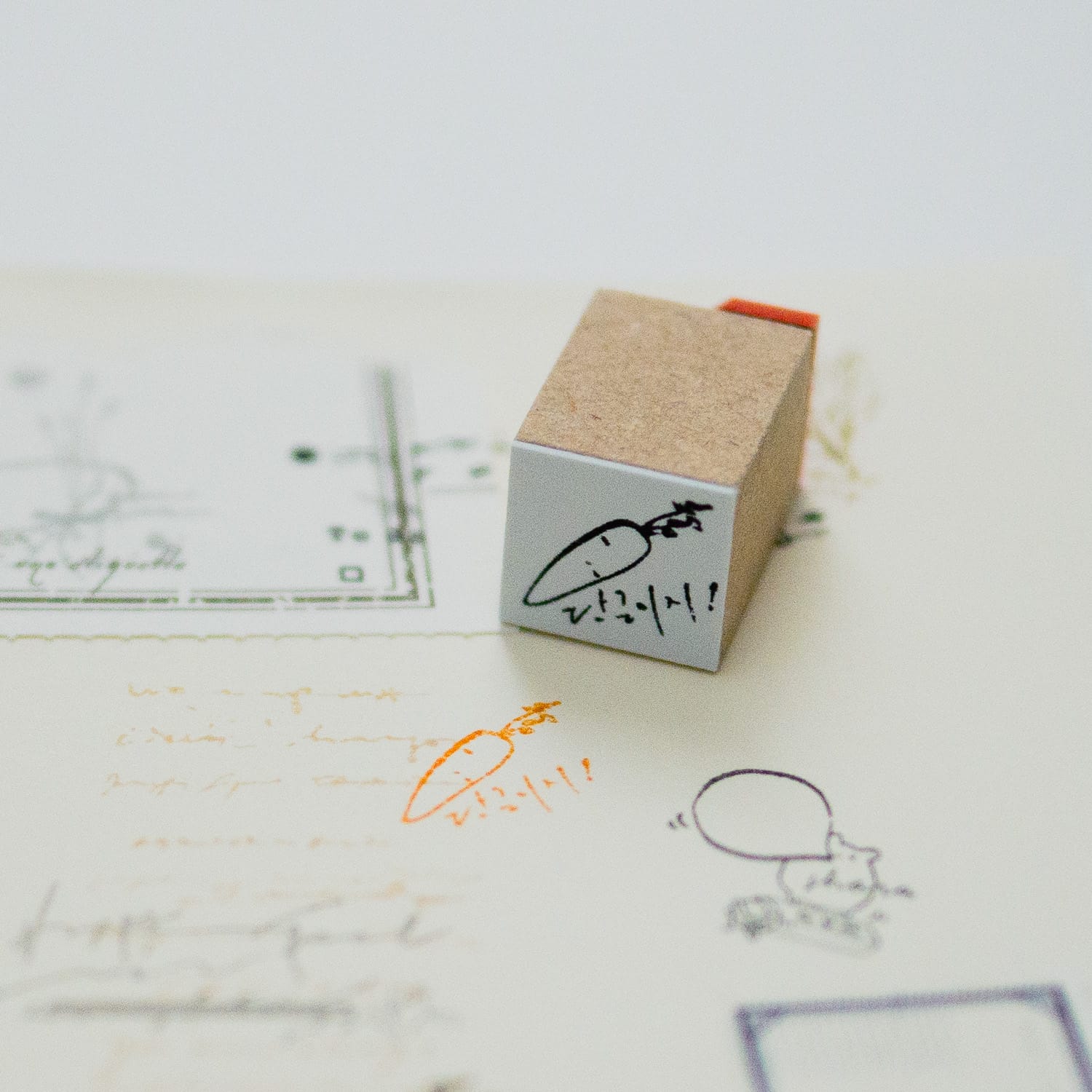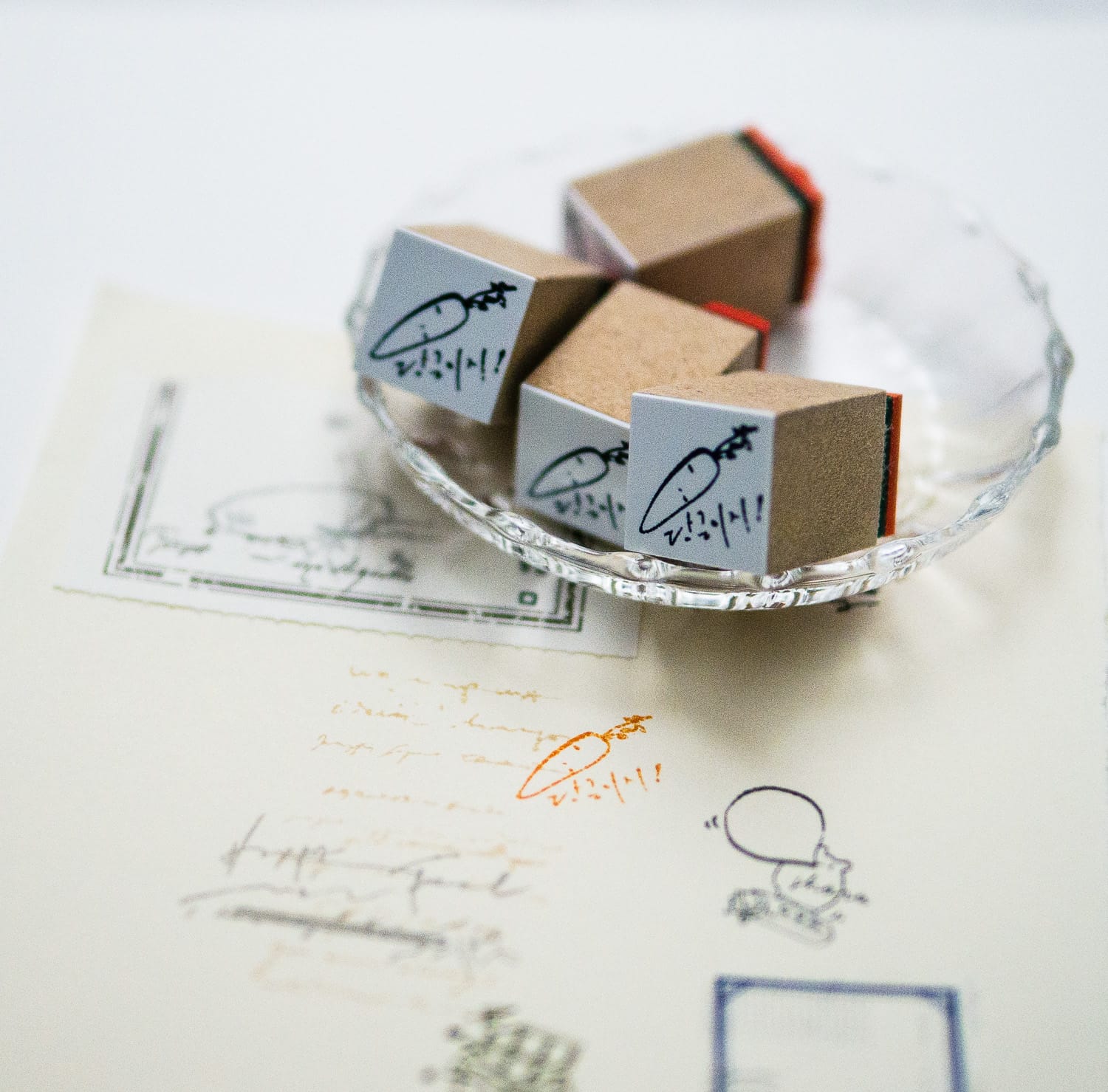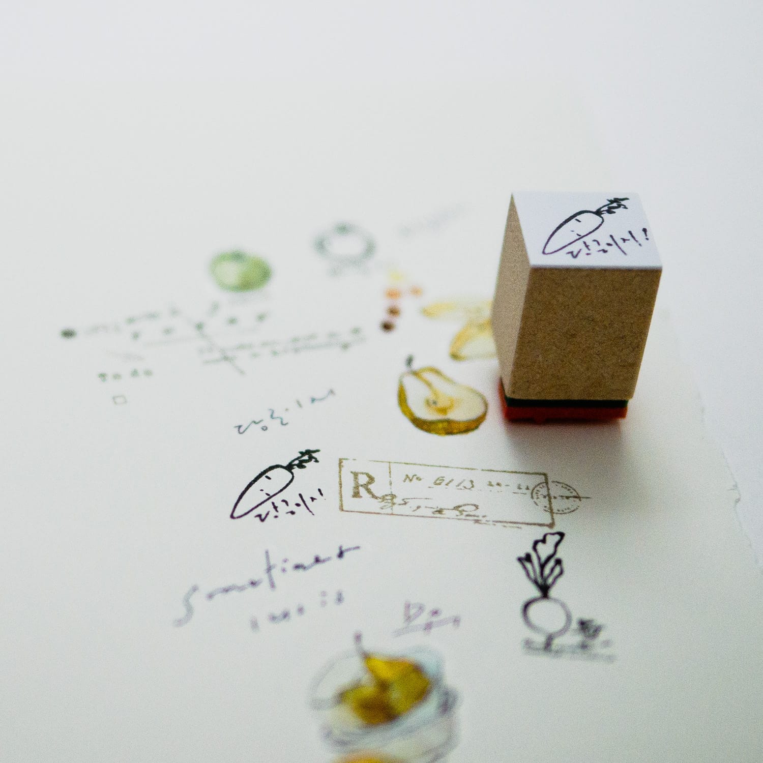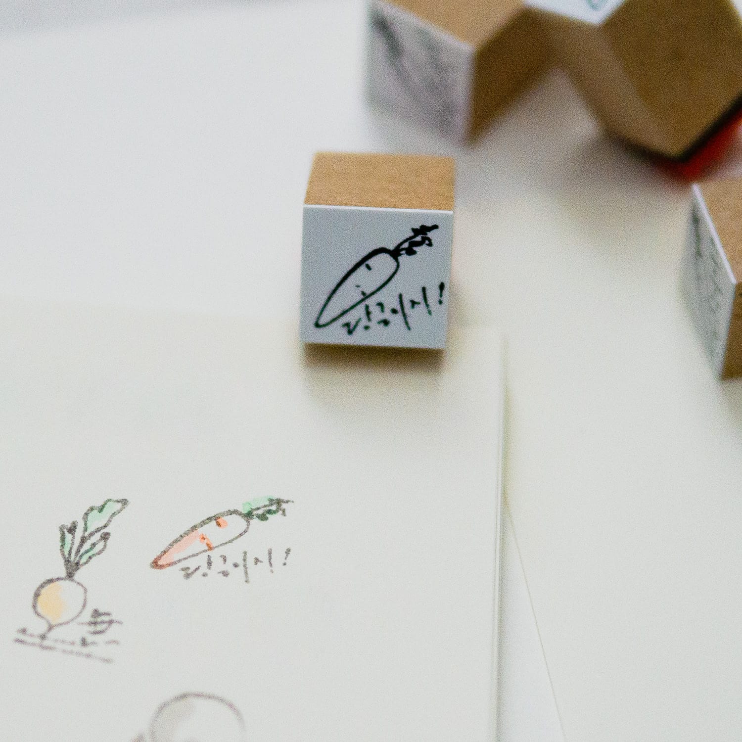 にんじんのイラストと韓国語を組み合わせたスタンプです。