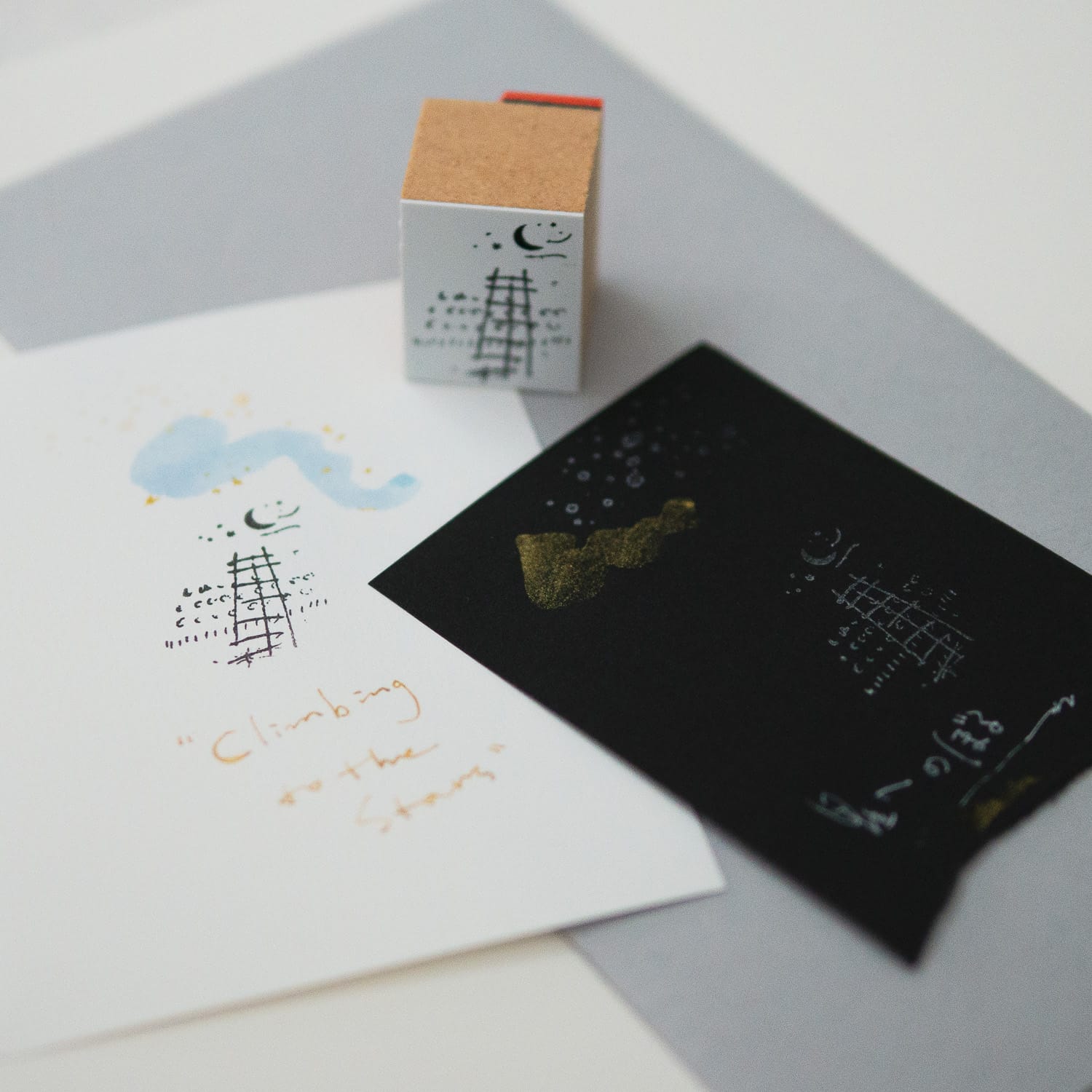 星柄を重ね合わせたり、ブルーやシルバーのインクパッドで星空の雰囲気を変えてみたりして、